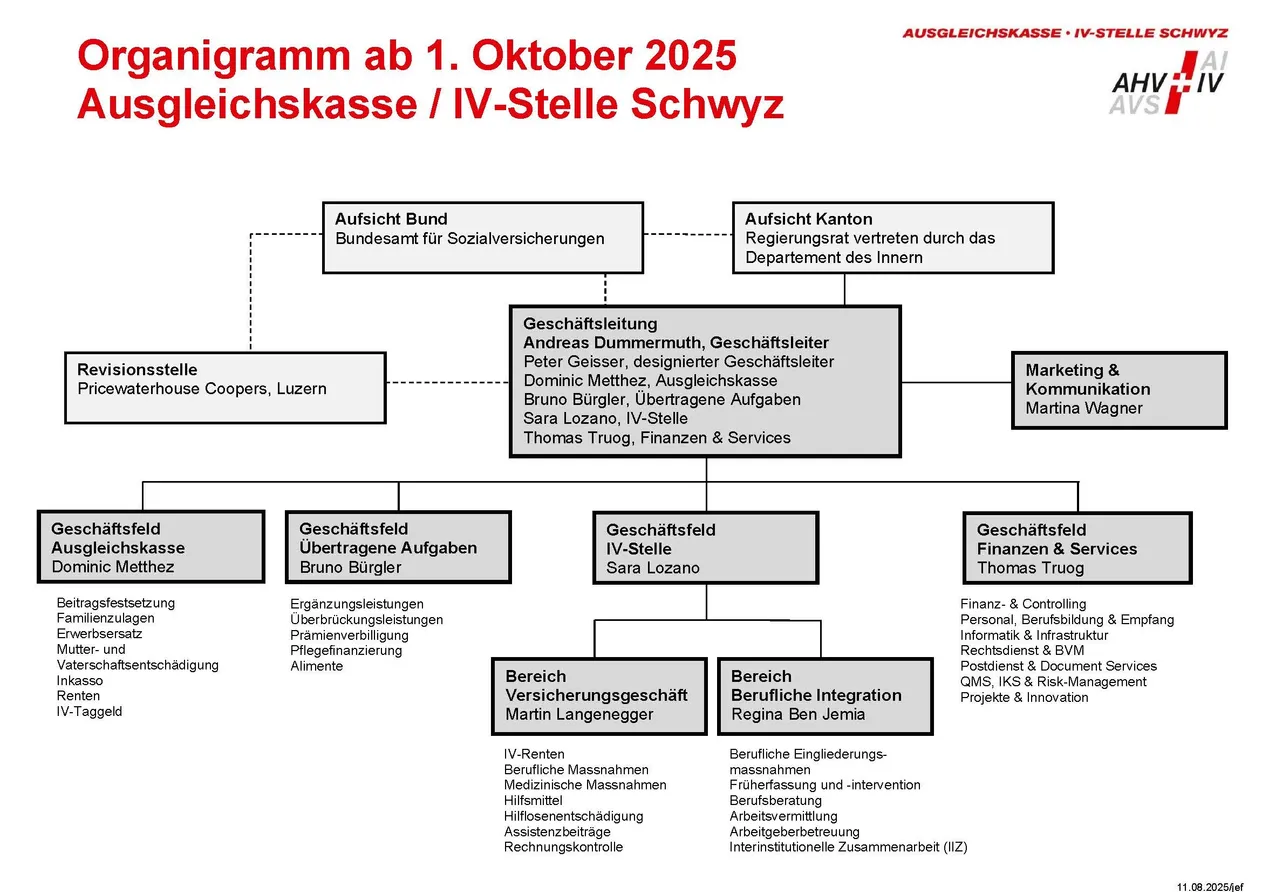 - Geschäftsfeld Ausgleichskasse: Leiter Dominic Metthez